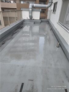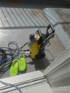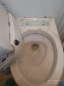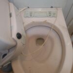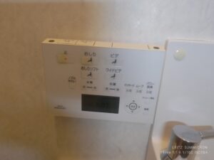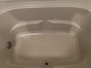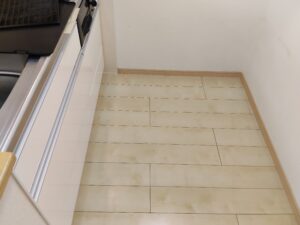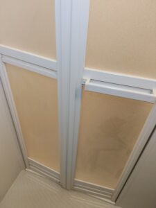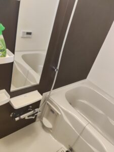 洗面台とユニットバスの付け根の洗浄終了手前(全部キレイに落とした)