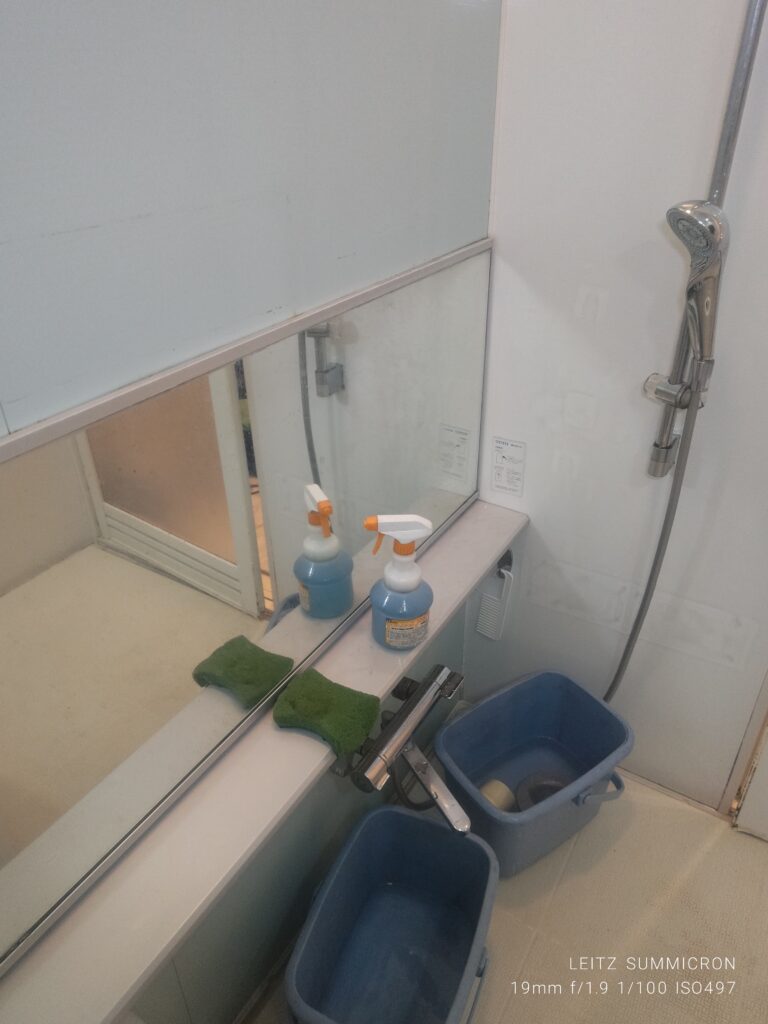 シャワーとカランは壁が終わってから洗浄