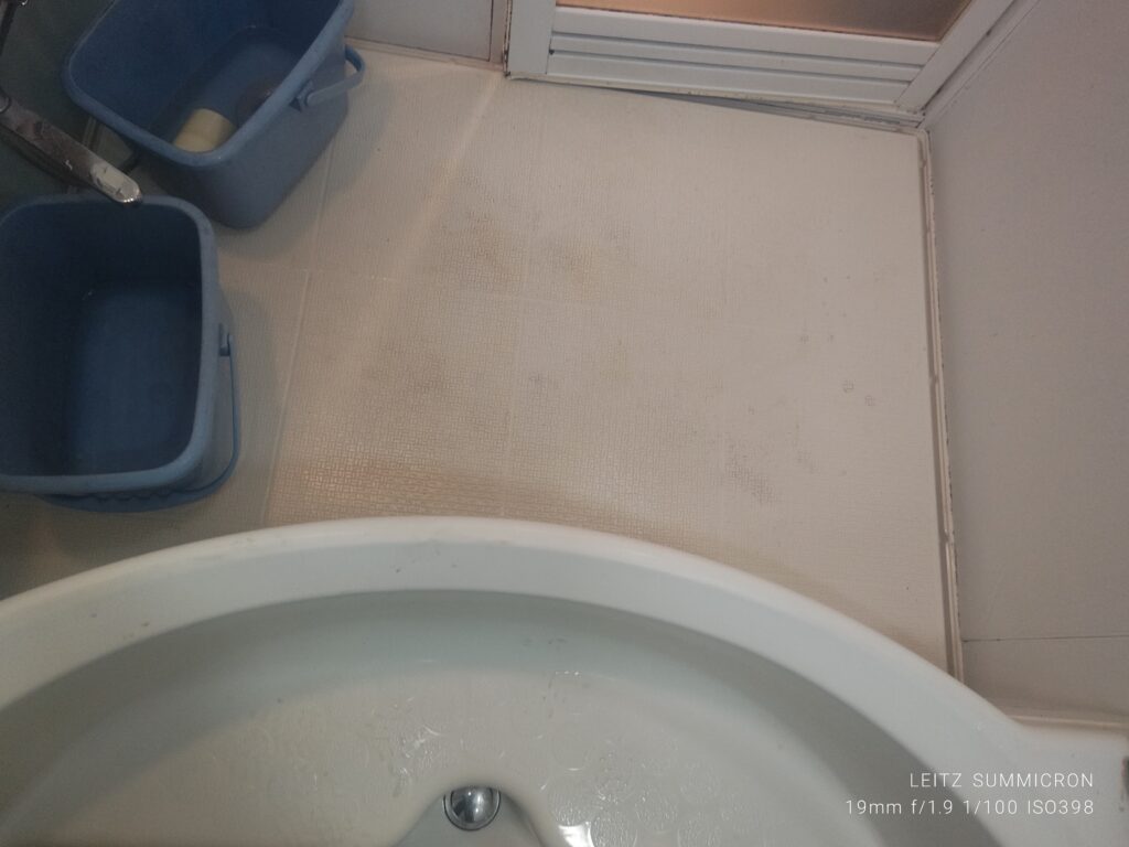 床は専用のブラシに持ち替えて洗浄で、四隅ほんとはカバーがあるけど外してる。と事前に報告あり
