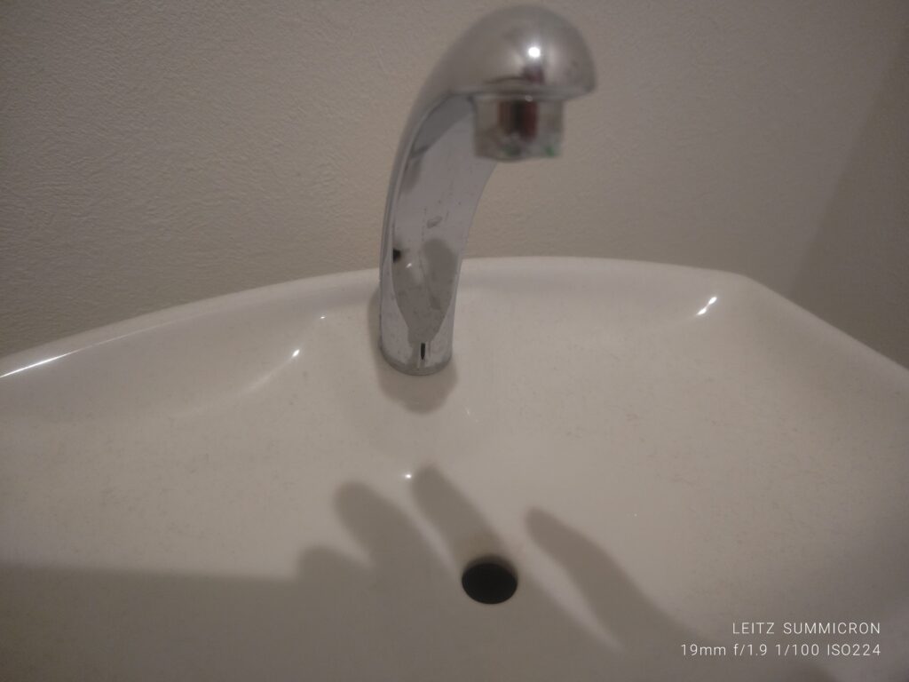 しっかりと水垢の石がこびりついてます