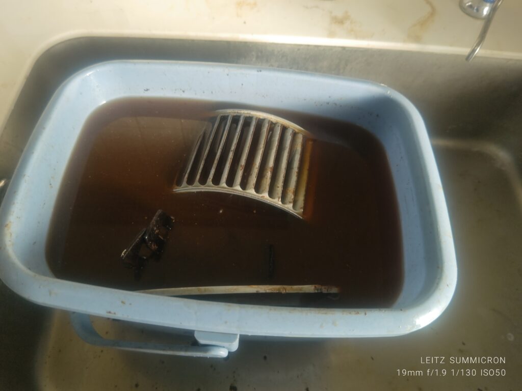 練馬区氷川台④キッチン(レンジフード) 洗浄中2 2025年12月1日 最終更新日時 : 2025年12月1日 shine-osouj 勝ちがちに付いた油を取り除く 251119142134228 反対側も一緒 251119142145551 工具使ってファンを取った 251119143620020 洗剤入れて煮込む事2時間くらい?の色 251119144416243