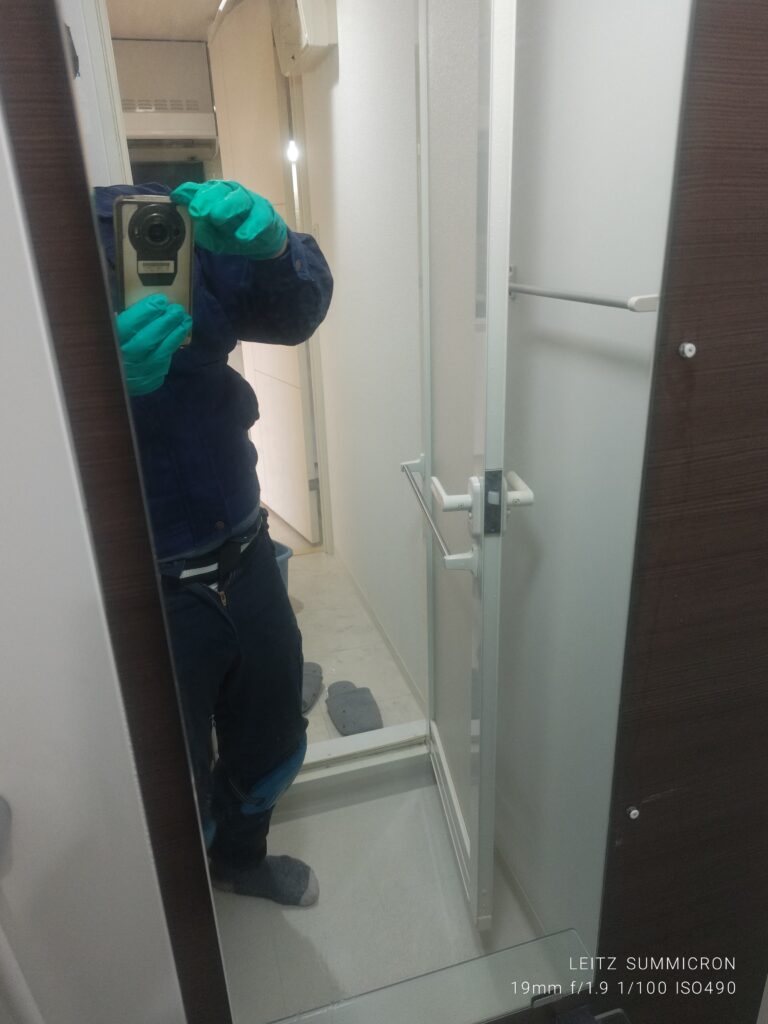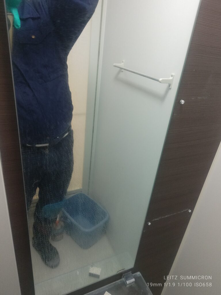 洗浄後の浴室扉