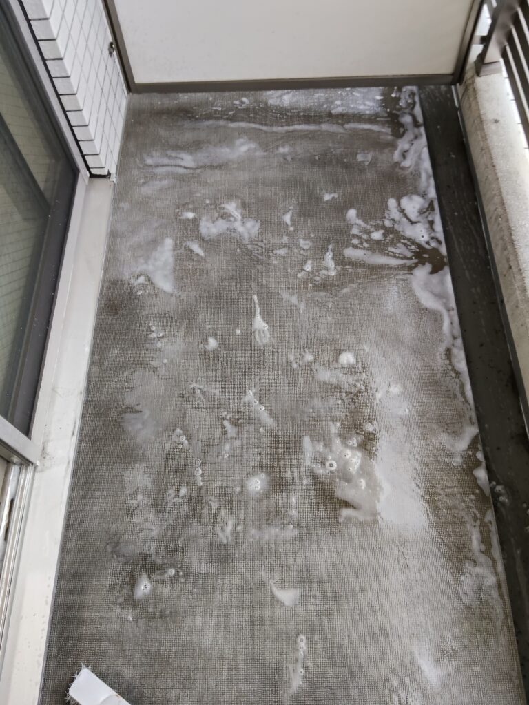 洗剤水バラまいて汚れ取ってます