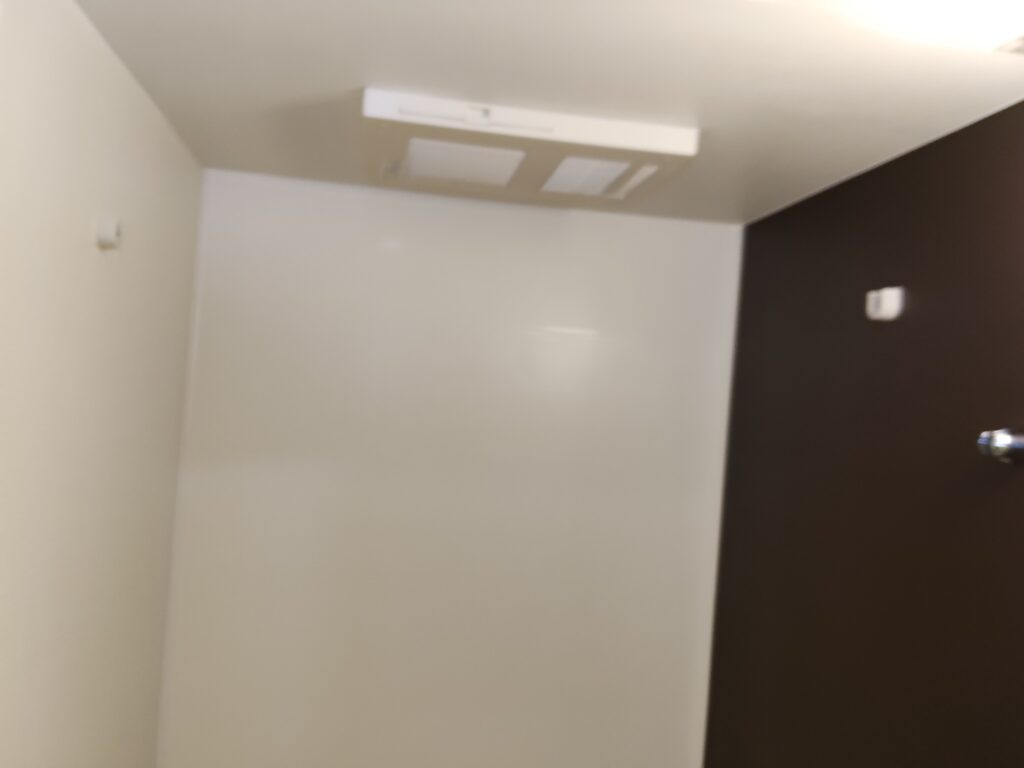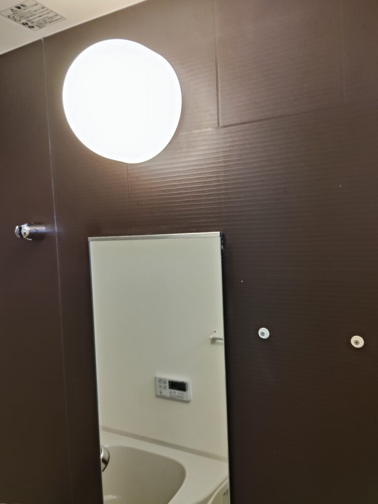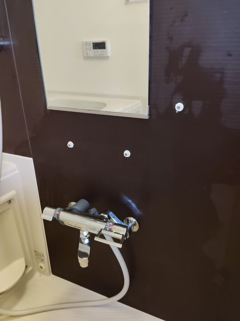 鏡に映る浴室リモコンも水垢だらけだったので綺麗にしました