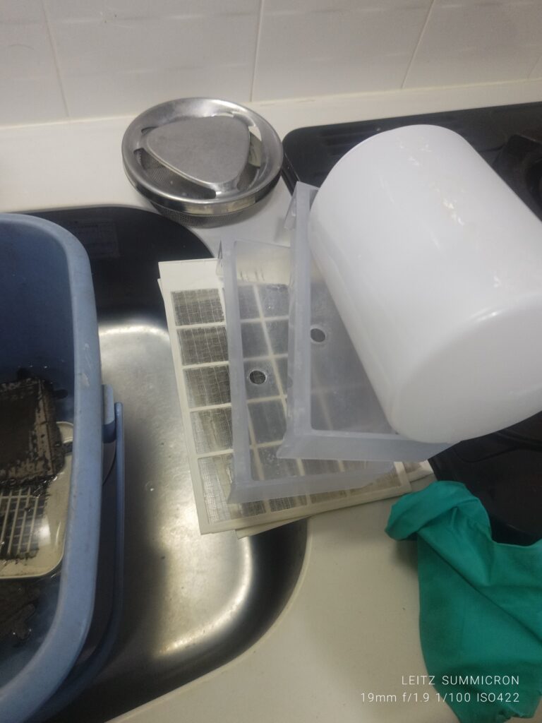 浴室の照明カバー・受け皿・換気扇のフィルター等洗ってます