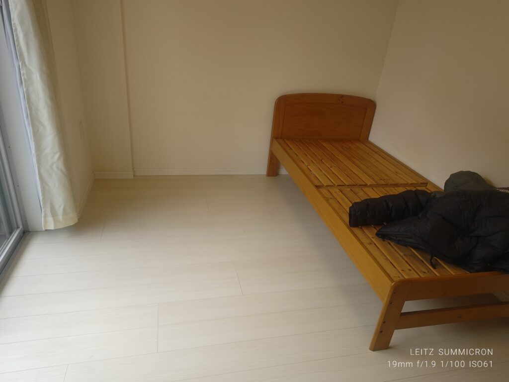 全行程終了後の室内、ベッドは元からある物