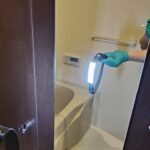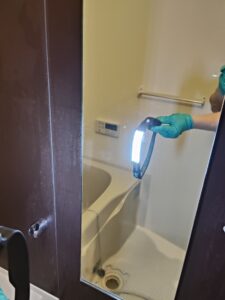 待ち時間に椅子や桶等浴室の物を一緒に洗浄。