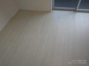 手直しの理由、清掃後に壁紙やが入り、クロスの張替。 その前にクロスの張替が分かったから、手短な洗浄で終わった。 掃除機かけて、モップで洗った。 いつもとは違う方法で床を仕上げる。
