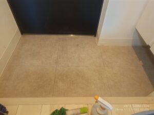 冷蔵庫も一度どかして下を掃除 棚の上もちゃんと掃いて拭いて 下駄箱の中も全部掃いて吹く 苦戦のベッド下(窓側) 部屋側掃除機とモップ 玄関洗うとキレイになるよ