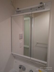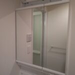 鏡や照明カバーを洗う 洗面ボウル周辺を洗う 浴室と洗面台の間に付いている通気口を外して洗う 洗った後です