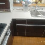 キッチンから作業台を経過して、最後シンクを洗い洗浄完了 キッチンの上から下まで全部洗いました 扉の取っても全て洗いました